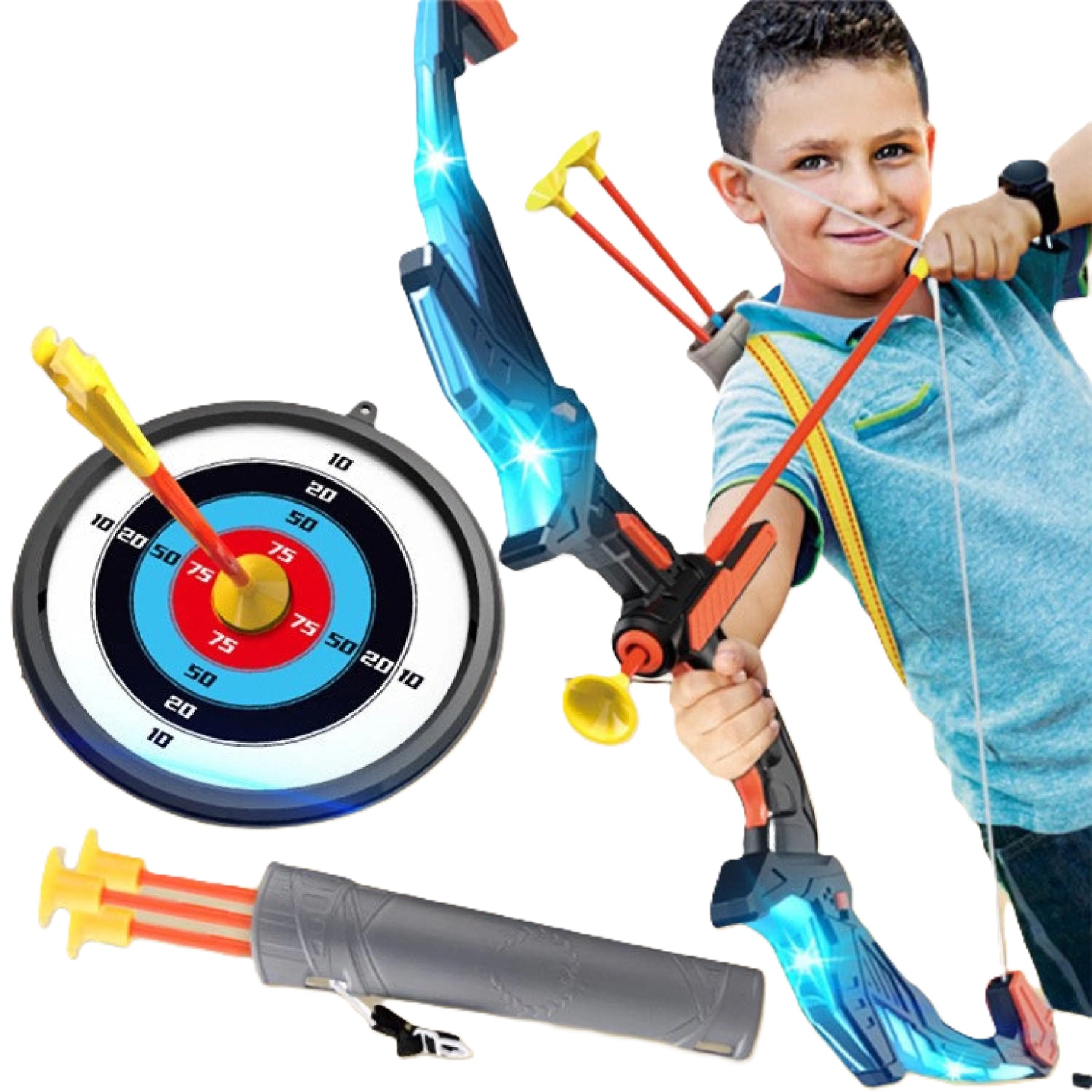 Led Bogen Pfeil Spielzeug Set für Kinder mit Saugnapf-Pfeilen und Zielscheibe
