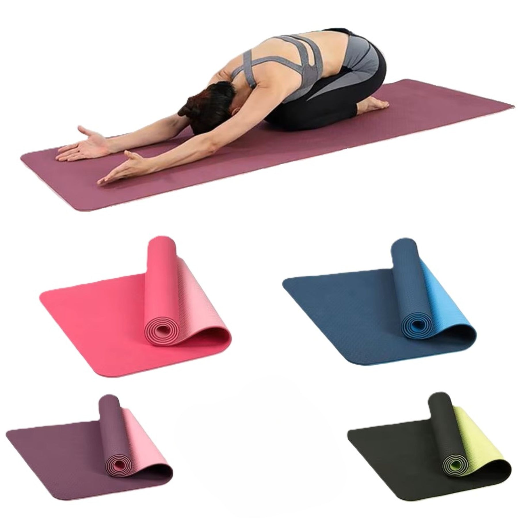 Yoga-Matte mit Tragegurt, 183 x 61 cm rutschfest und strapazierfähig, gelenkschonend